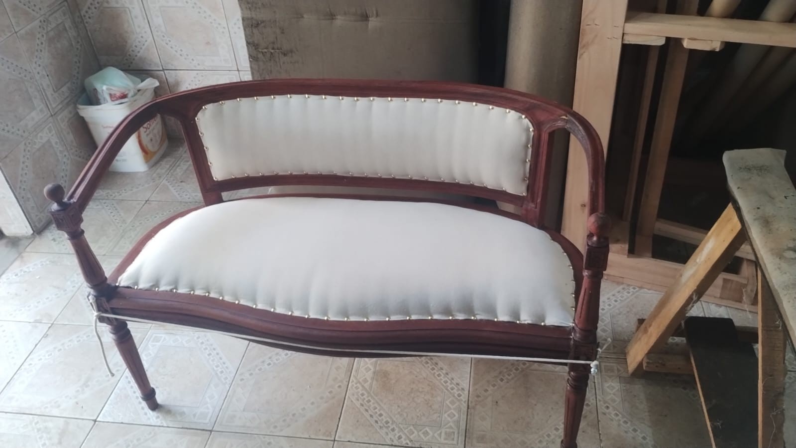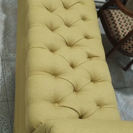 Com estrutura em madeira torneada e acabamento refinado, o banco clássico estofado traz um toque de charme e requinte para qualquer ambiente. O assento e encosto acolchoados em tecido claro, realçados pelos detalhes em tachas, garantem conforto e estilo atemporal.