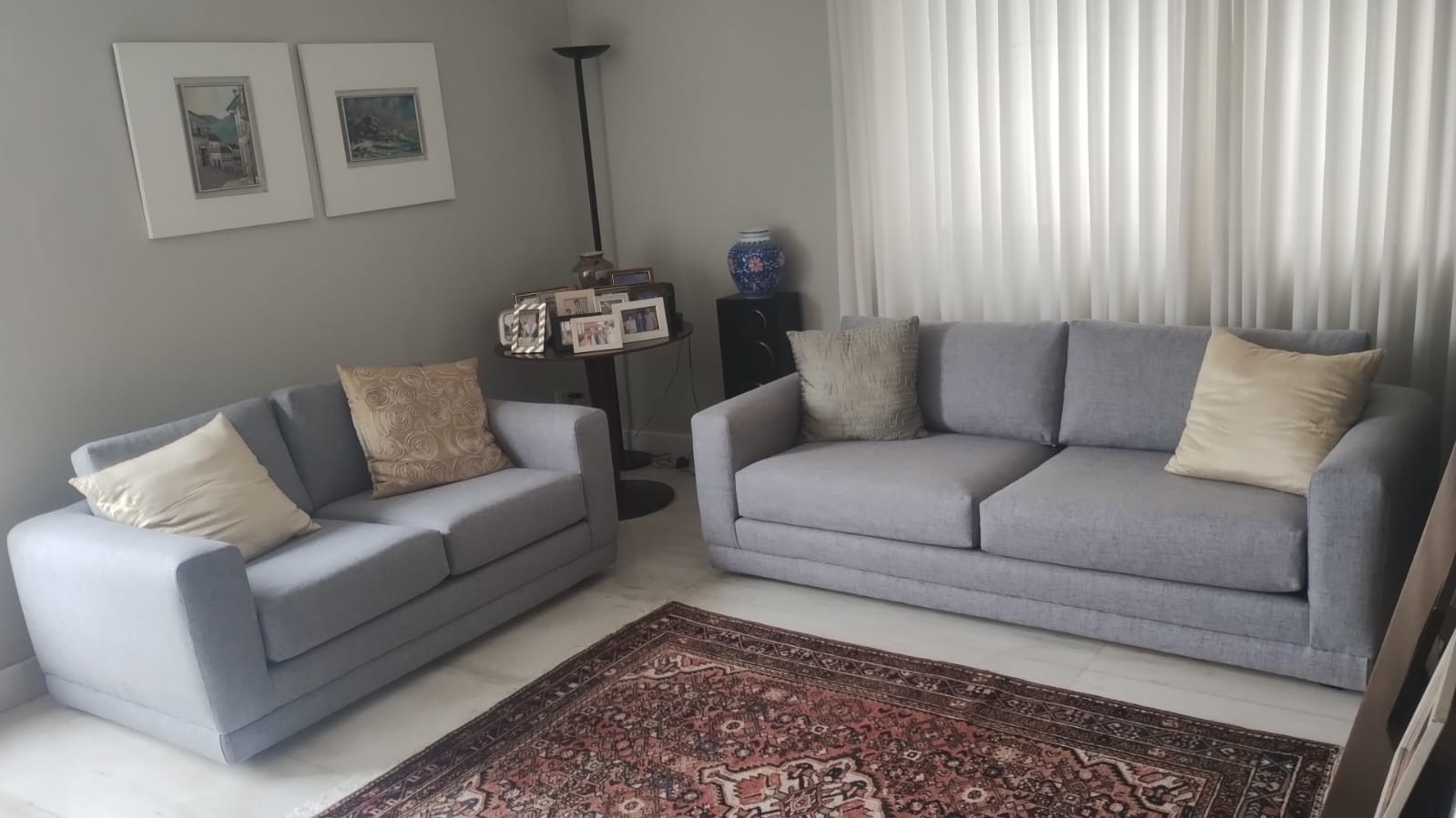 O Conjunto de Sofás Cinza Minimalista une modernidade e conforto em duas peças que se complementam. Com linhas retas e elegantes, os sofás de 2 e 3 lugares oferecem praticidade e aconchego para a sala de estar. Revestidos em tecido cinza de alta qualidade, harmonizam facilmente com diferentes decorações e proporcionam um ambiente sofisticado e acolhedor. As almofadas soltas permitem organização prática e um toque personalizado no visual.